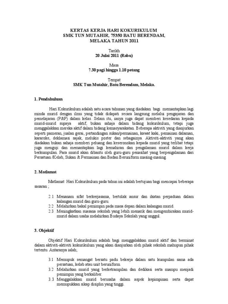 Kertas kerja hari kokurikulum 2014 by azron62 issuu. Kertas cadangan 740 pagi hingga 1100 pagi 7. KERTAS KERJA SULAM KOKURIKULUM HKB115 NAMA PROGRAM.